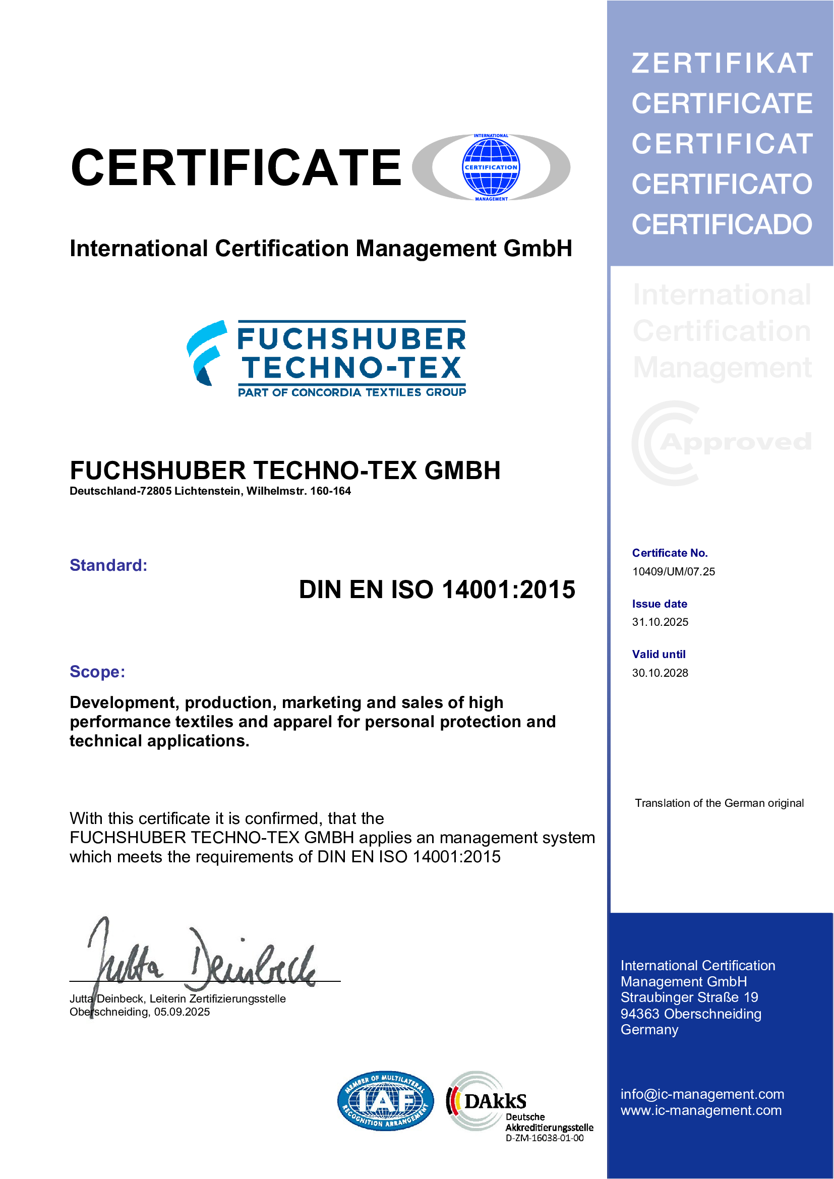 Since 2017, Fuchshuber Techno-Tex has been part of the Concordia Group, which unites divisions for workwear, fashion, bedding, and specialized solutions under one roof. As an independent subsidiary based in Lichtenstein-Unterhausen, we combine the best of both worlds: deep expertise, short decision-making processes, and a lot of power.